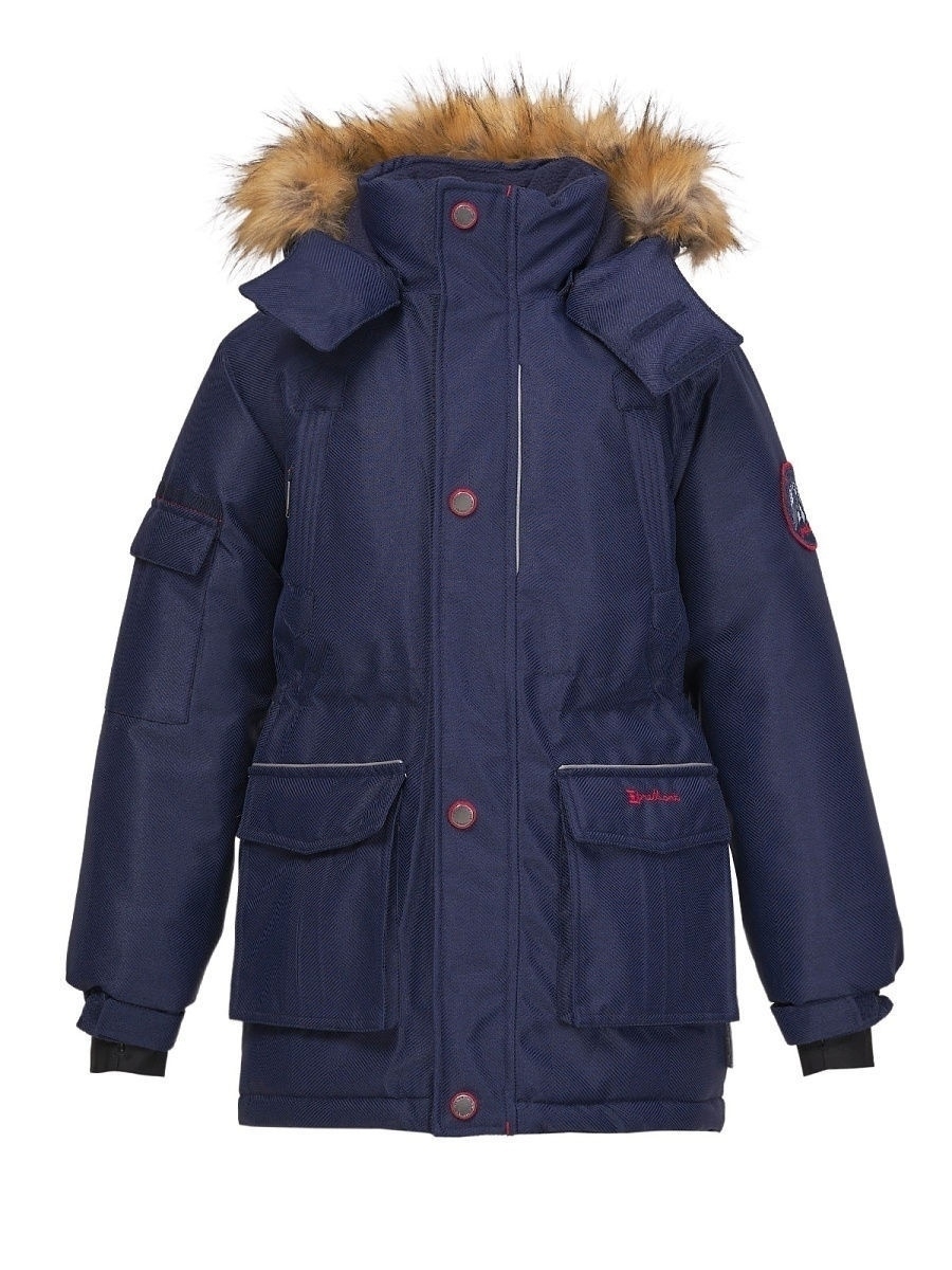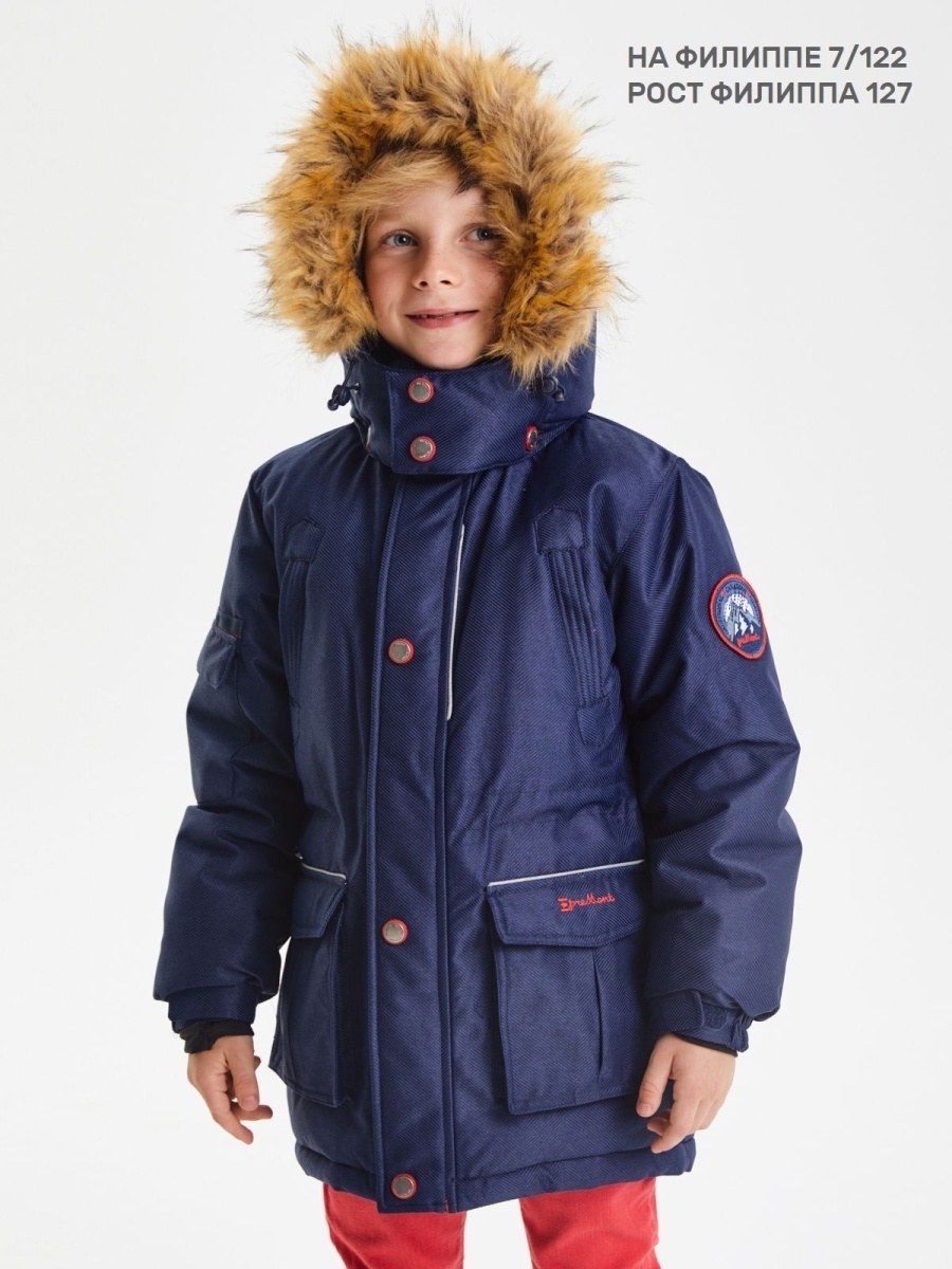 Зимняя парка из ткани Twill средней плотности с мембранным напылением 5000/5000. Особенности модели: 1. Утеплитель: Tech-Polyfiil 240 г. 2. Температурный режим: от +5 до -25 градусов. 3. Подкладка: Флис. Скользящая ткань в рукавах и по нижней части изделия. 4. Съемный капюшон на молнии c утяжкой. 5. Съемный искусственный мех. 6. Дополнительная утяжка на талии. 7. Эластичные манжеты с фиксирующей липучкой. 8. Внутренняя манжета с прорезью для пальца. 9. Два кармана на липучках, два на молнии, карман на рукаве - на липучке. Внутренний нагрудный карман на липучке. Внутренний глубокий карман из ткани-сетки. 10. Качественная молния YKK с защитой подбородка. Как выбрать размер? Рекомендуем выбирать размер на текущий рост ребенка. Он уже содержит запас на вырост 6 см, что позволит носить изделие не один сезон. Как ухаживать за изделием? Парку можно стирать в машинке: бережная стирка при 30 градусах, отжим на низких оборотах. Небольшие загрязнения удаляются влажной тканью.